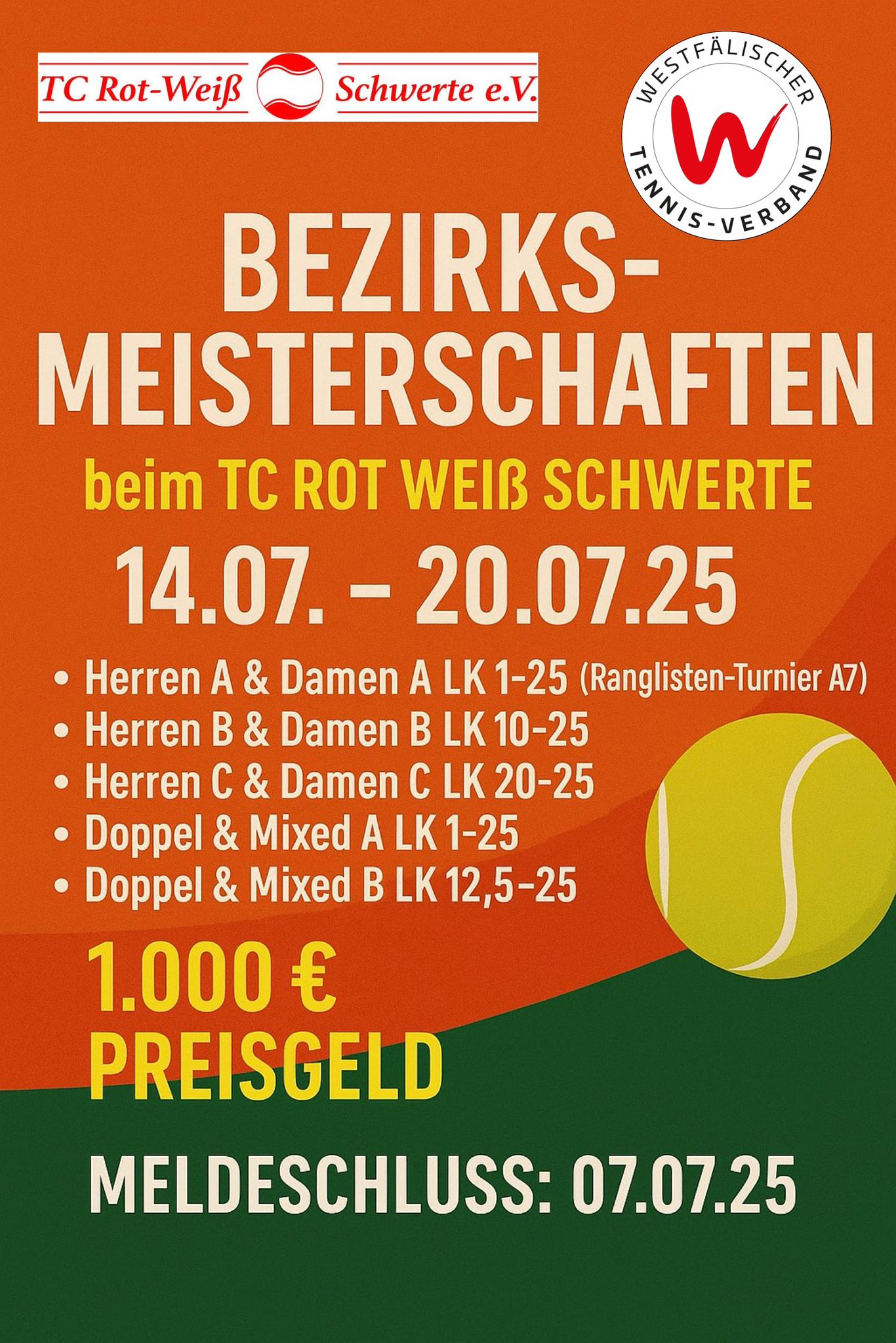 Bezirksmeisterschaften Südwestfalen 2025 beim TC Rot-Weiß Schwerte